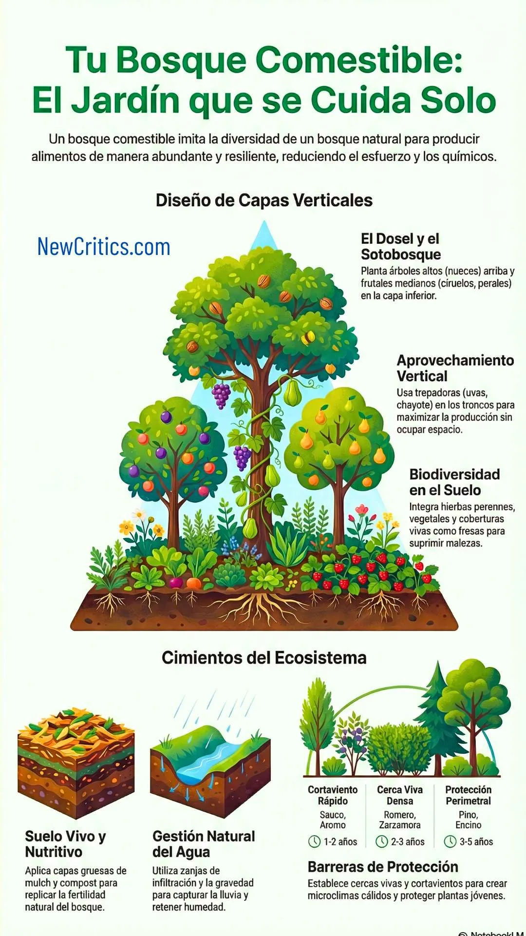 - Un bosque comestible es un ecosistema sostenible que imita la naturaleza.